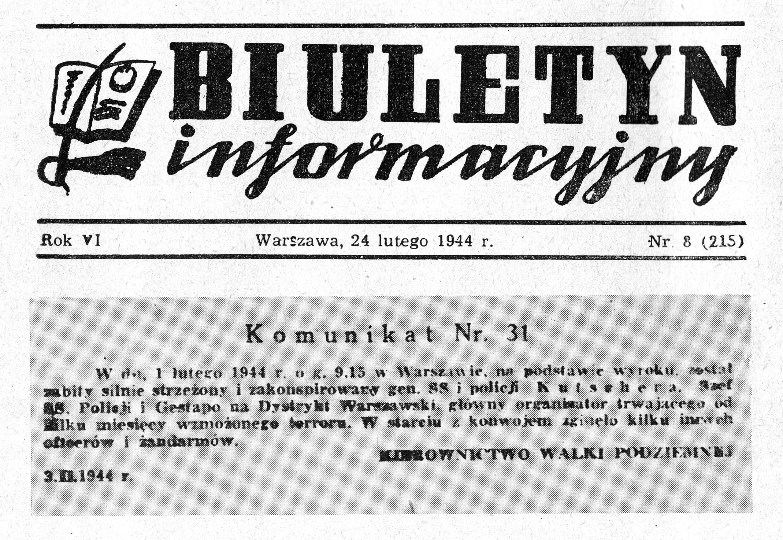 Biuletyn Informacyjny dated 24th February 1944 ( Source )