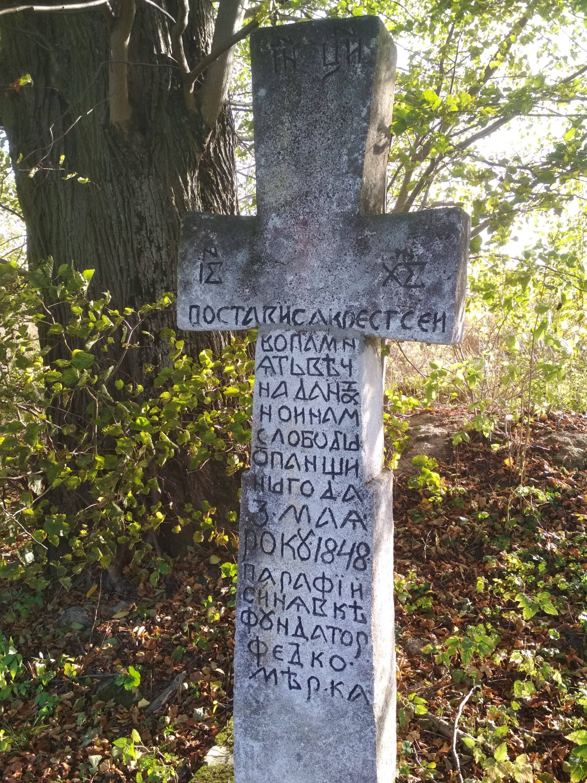 commemorating the imperial patent of 17 April 1848 bearing serfdom and expressing gratitude to God (and the emperor!) for freeing from this feudal burden. To this day, 18 crosses have been preserved in Eastern Roztocze. The photos present two of them – from the village of Rudka (very rare phenomenon of inscriptions in Polish!) And from the non-existent village of Sieniawka (inscription in Ruthenian).
