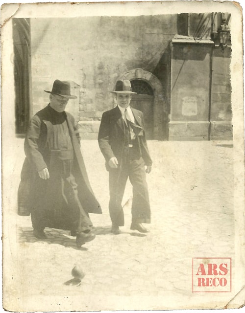 This photo shows people we don’t know. Perhaps the clergyman or the man photographed with him were important to my family in some way, which is why this photo was preserved in an old album. The place was identified by my wife, who, noticing the characteristic ornaments on the stone doorframes and arches in the upper left corner of