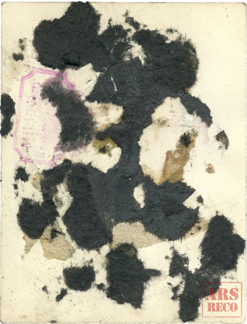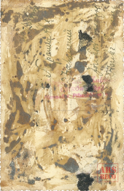 The attempt to remove these layers was undertaken by my wife Karolina, slowly and carefully cleaning each reverse of the photograph. This has revealed handwritten inscriptions or stamps in places. On the other hand, several of the photos without a trace of glue, ironically, had no captions. Some of the photographs, in a larger format, are about 9 x 14 cm, while others are only 6 x 8 cm. The reverse of most photographs looked like this: