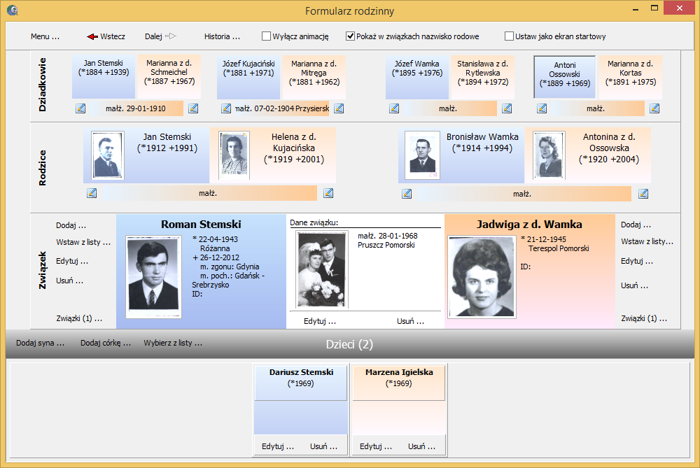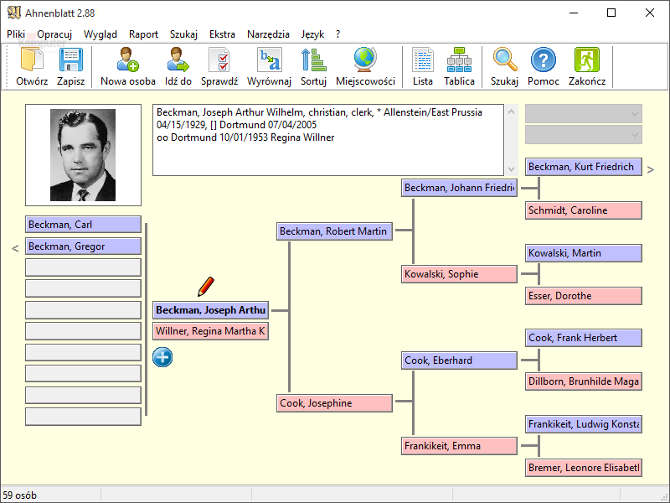 Pomimo swojej bardzo prostej grafiki program jest niezwykle intuicyjny i przyjazny dla użytkownika. Poniżej przykład drzewa genealogicznego wygenerowanego w ramach programu: